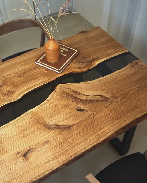Oak resin dining table with smoke gray epoxy 200x100cm Avalon